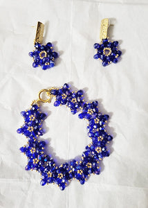 The Bea Royal Blue & Gold Beaded Bracelet and Earring set