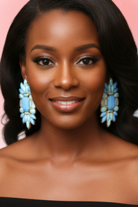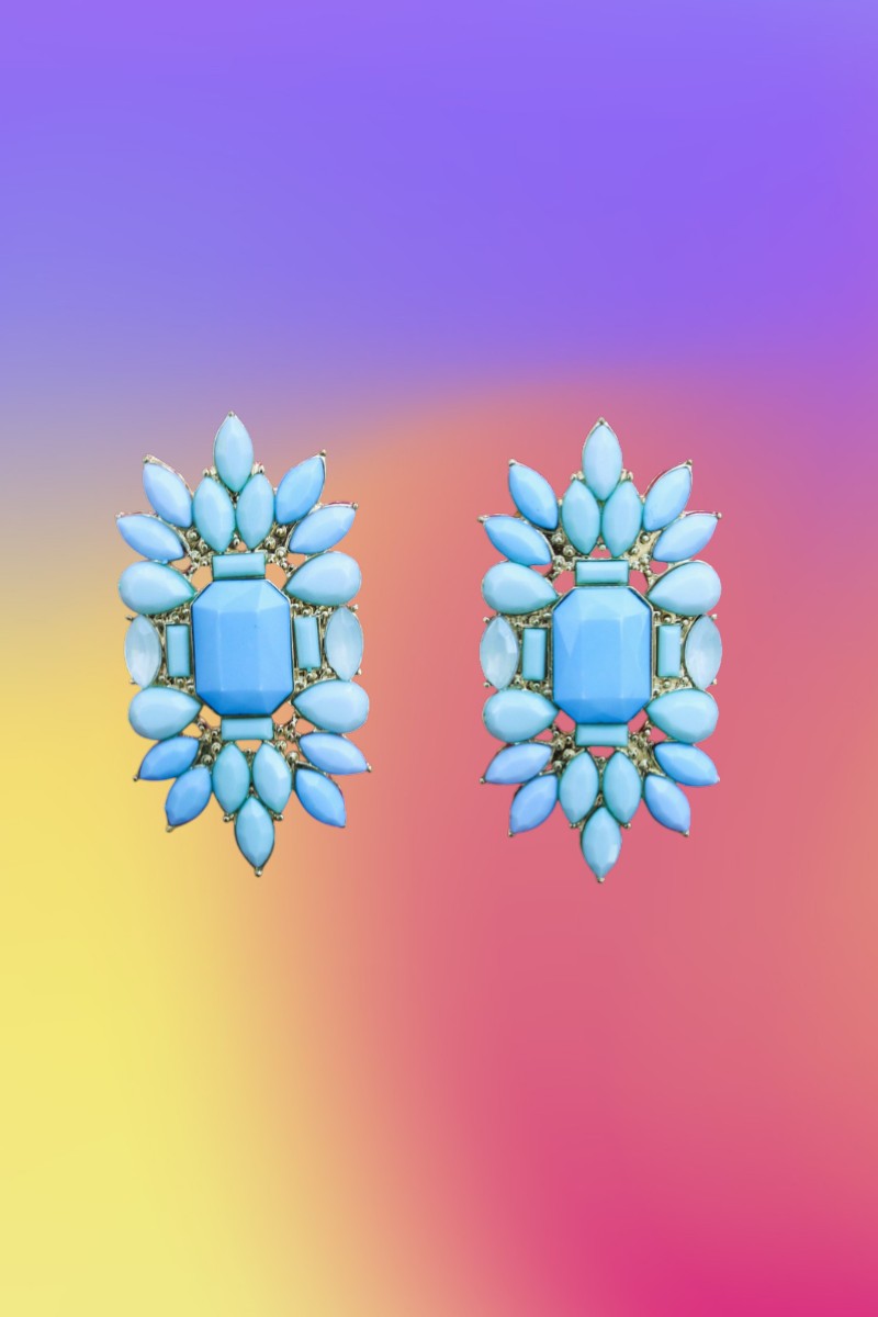 Artfully designed with precision, these blue studs showcase a sophisticated blend of crystalline elements and gold accents arranged in a timeless botanical motif.